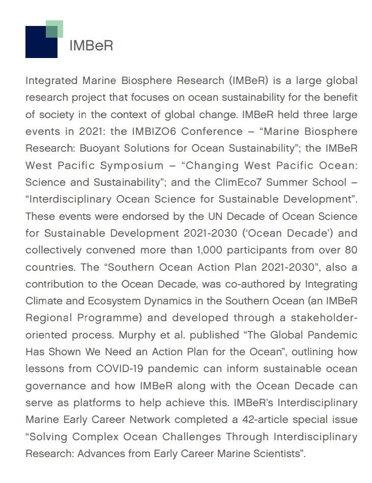 Find details below about IMBeR’s activity throughout the 2021-2022 year, also available on page 20 of our Annual Report.