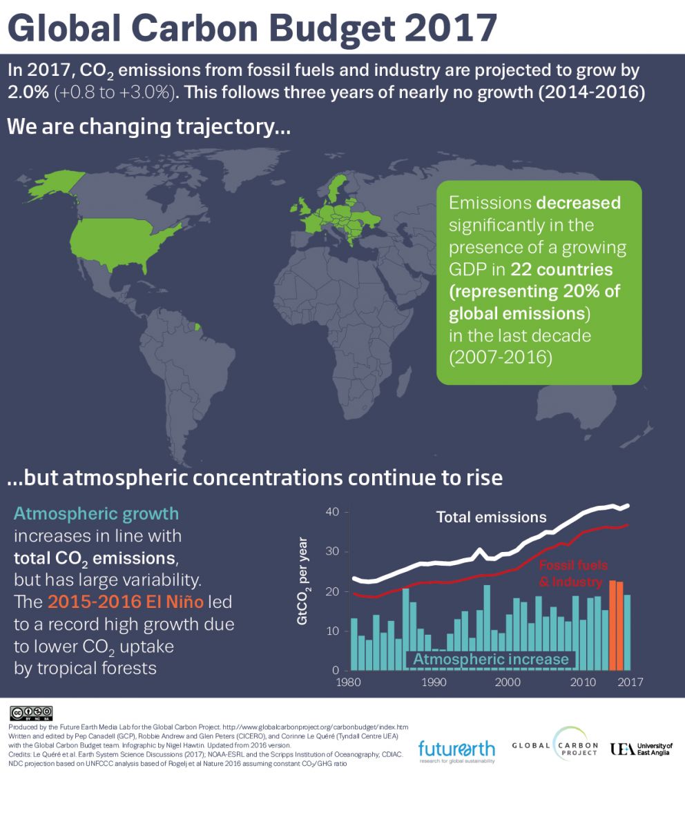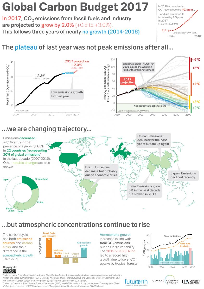 This media release is part of the Global Carbon Budget 2017, the annual update by the Global Carbon Project. It is based on the analyses published here: