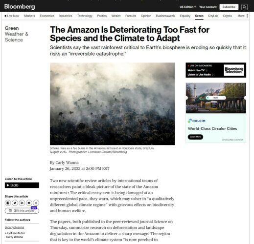 A synthesis of findings led by David Lapola and co-authored by other members of of the Future Earth Global Research Network Analysis, Integration, and Modeling of the Earth System (AIMES) has garnered global media coverage in several top tier outlets, including CNN, The Guardian, BBC News Brasil, and Bloomberg. The article is also on this week’s cover of Science.