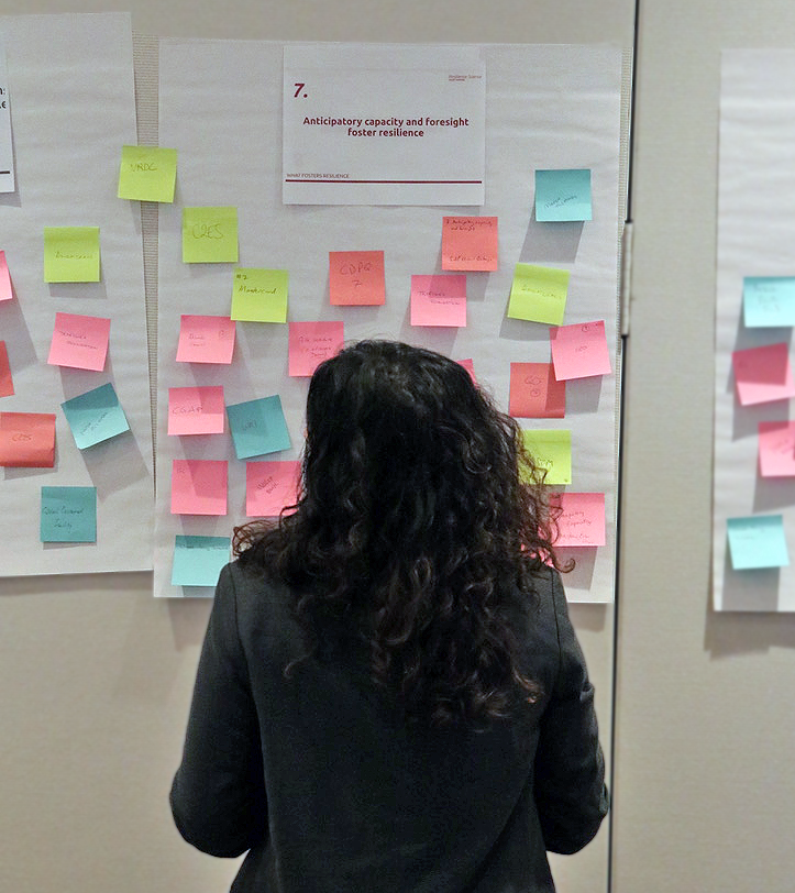 Participants were first introduced to a long list of 13 draft Must-Knows that were organized into four categories: what resilience is, why it matters, what fosters it, and what needs to be considered. Through an interactive ranking process, six of the Must-Knows were prioritized for deeper exploration. These covered everything from the importance of anticipatory capacity to the role of inclusive finance.